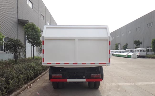容積7~8立方米,方形密封式箱體,材質(zhì)邊三底四,國產(chǎn)油泵、多路閥、取力器、液壓油缸,駕駛室外部操作,箱體底部雙杠液壓舉升卸料,箱體后門液壓開啟。
