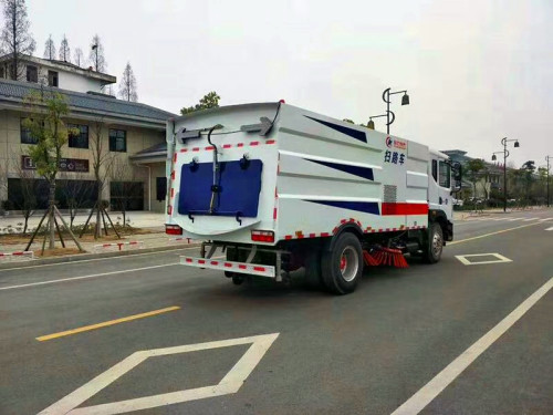 3.5立方水箱、6立方不銹鋼垃圾箱,中置4掃盤、后置吸盤、三洋馬達、康明斯副發動機、施耐德控制開關、海普瑞思電磁閥組、無極變速自動離合器、免維護離心式風機、不銹鋼垃圾箱、北極星電子水泵、垃圾箱舉升自卸、尾部LED箭頭燈、手動泵應急系統。可選裝前沖后灑、垃圾箱自潔功能、倒車影像作業監控、前置雪鏟、掃雪滾。