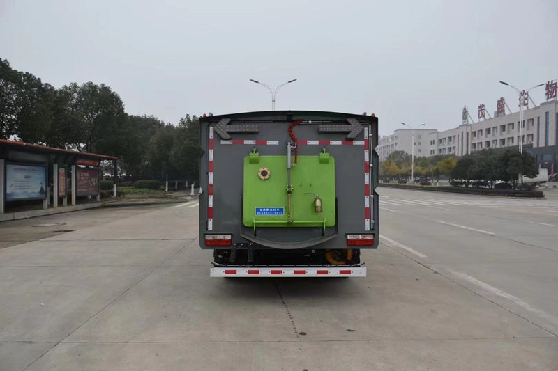 東風多利卡洗掃車采用洗,掃,吸,混合的方式收集垃圾,濕式除塵、電液PLC一鍵控制,液壓傾翻卸料的作業方式對路面進行清掃作業。