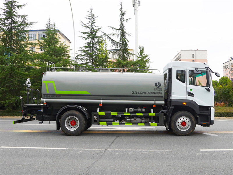 產品標配前噴 (鴨嘴) 、后沖、后灑、側噴、后置式工作 平臺,平臺上配置綠化水炮 (可 360°旋轉,既可以調成柱狀,也可 以調成霧狀,更可以調成直沖狀、大雨、中雨、小雨、毛毛雨) ,配 備優質大功率專用灑水泵(可自吸自排,可從河里或池塘抽水到罐體), 取力器,雜物過濾網,消防接口, 自流球閥系統、取力器、球閥、濾網 均為國家標準產品,主管道加粗,法蘭墊、法蘭盤加厚,大通徑球閥。 整體具備性能優良安全可靠、效率高、流量大、維修方便等特點