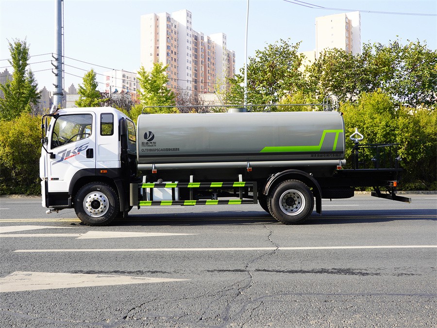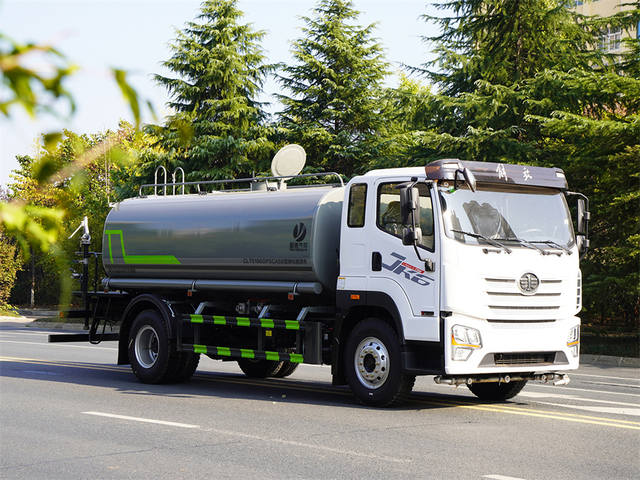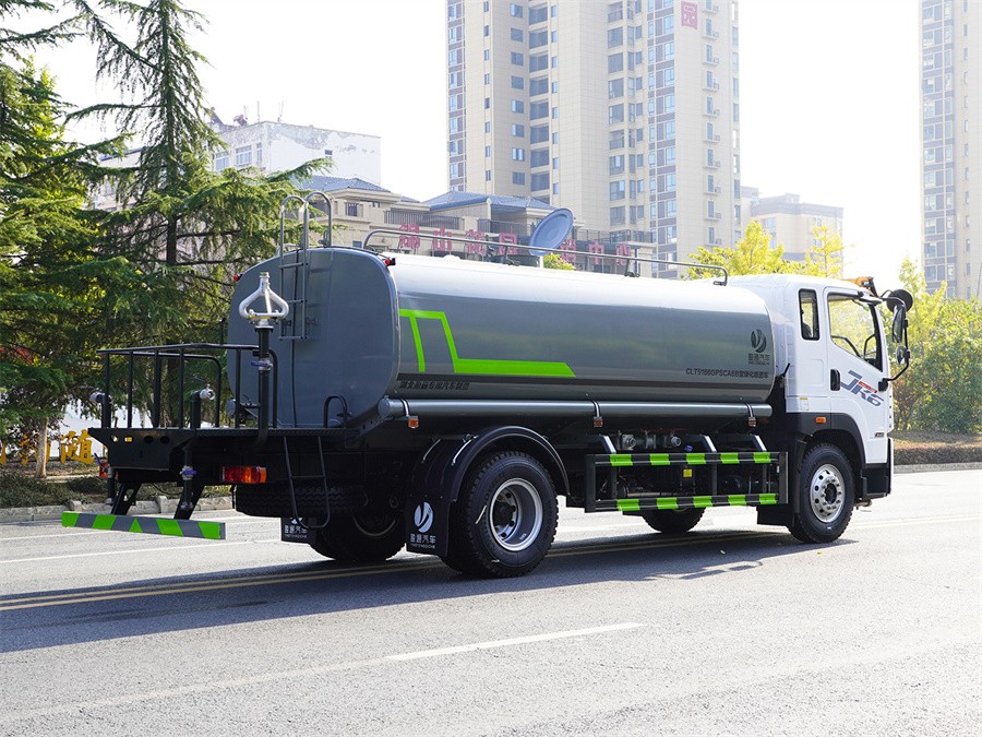 產品簡述:縱昂牌 CLT5186GPSCA6B 型綠化噴灑車標配前噴(鴨嘴)、后對沖、 后灑、側噴、后置式工作平臺,平臺上配置綠化水炮(可 360°旋轉,既可以調 成柱狀,也可以調成霧狀),配備優質大功率專用灑水泵(可自吸自排,可從河 里或池塘抽水到罐體),取力器,雜物過濾網,消防接口,自流球閥系統、取力 器、球閥、濾網均為國家標準產品,主管道加粗,法蘭墊、法蘭盤加厚,大通徑 球閥。整體具備性能優良安全可靠、效率高、流量大、維修方便等特點